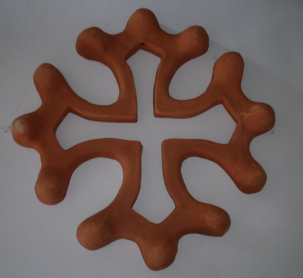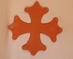 | Croix occitane plate diamètre 14.5 terre lisse rouge | Croix occitane diamètre 14.5 avec boules terre lisse rouge | Croix occitane diamètre 14.5 avec boules terre granuleuse |