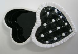 Boite à bijoux modèle coeurD'autres couleurs sur commande, n'hésitez pas à vous renseigner Boite à bijoux modèle coeur émaillé contour noir et centre blanc Boite à bijoux modèle coeur émaillé contour blanc et centre noir Boite à bijoux modèle coeur émaillé turquoise et violet Boite à bijoux modèle coeur émaillé rose et violet